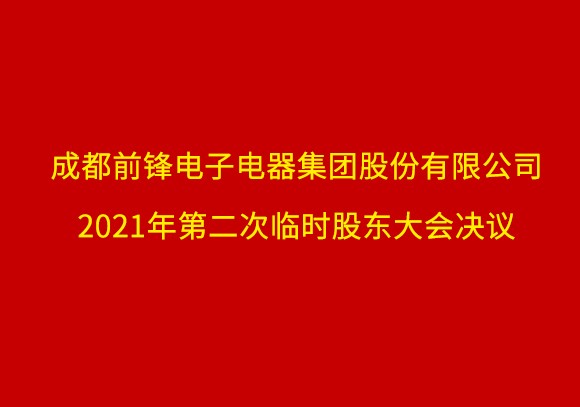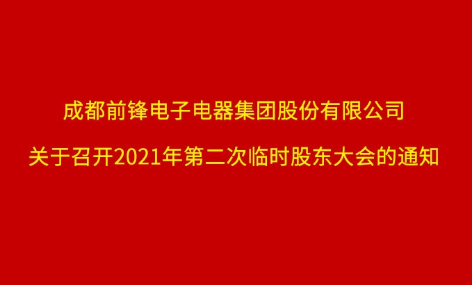 成都前鋒電子電器集團股份有限公司關于召開2021年第二次臨時股東大會的通知 成都前鋒電子電器集團股份有限公司(以下簡稱公司)第七屆董