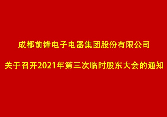 成都前鋒電子電器集團股份有限公司關于2021年第三次臨時股東大會的參會通知