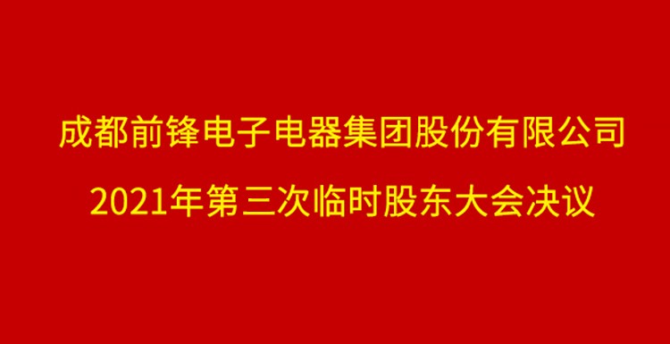 成都前鋒電子電器集團股份有限公司2021年第三次臨時股東大會于2021年11月1日上午在成都索菲斯喀萩莎酒店四川廳召開,經出席會議的股東或股東代表認真審議和表決,形成以下決議。