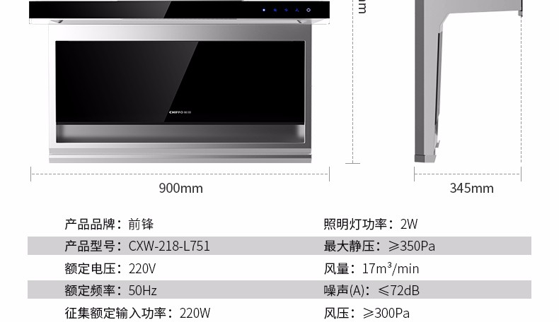 前鋒平板雙吸油煙機L751