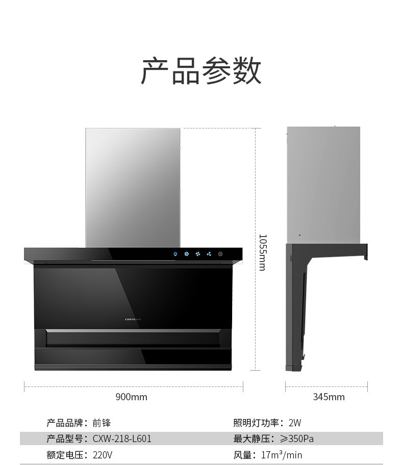 前鋒平板雙吸油煙機L601