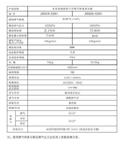 前鋒全自動強排式燃氣熱水器C201
