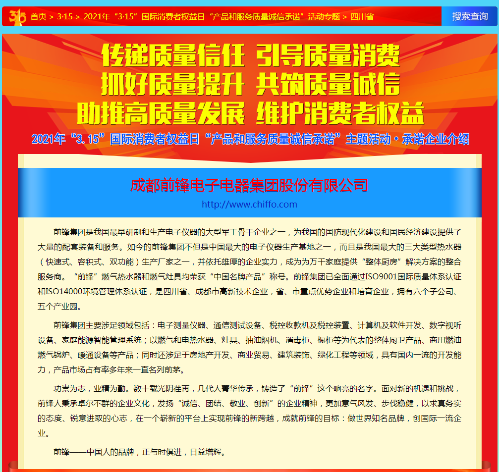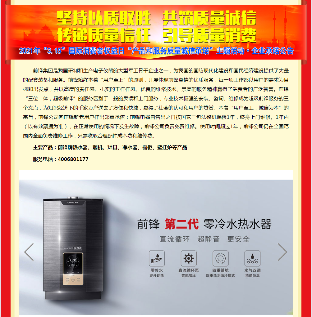 前鋒廚電“3.15”產(chǎn)品和服務(wù)質(zhì)量誠(chéng)信承諾公示